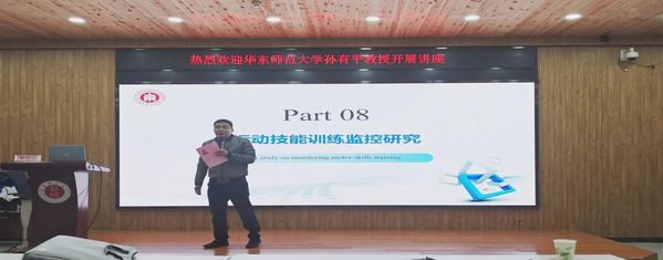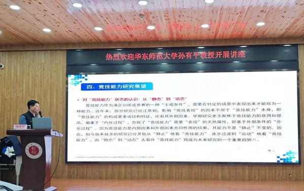 讲座中,孙有平教授以“运动训练学热点问题探蹊”为题,结合多年教学经验深入浅出、图文并茂地从训练内容、训练方法、训练安排及训练监控四个方面展开探讨。以案为鉴,带领大家充分了解我国运动训练学热点问题,同时以不同人群为出发点讲授运动训练学的实践意义。